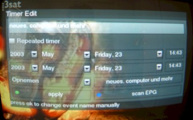 Timerfunctie, voor het opnemen / aanschakelen
