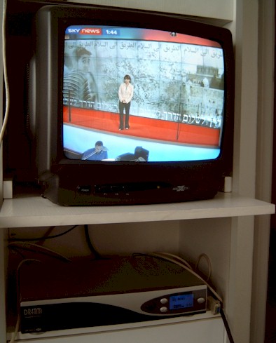coaxkabel in het blik geplugd.